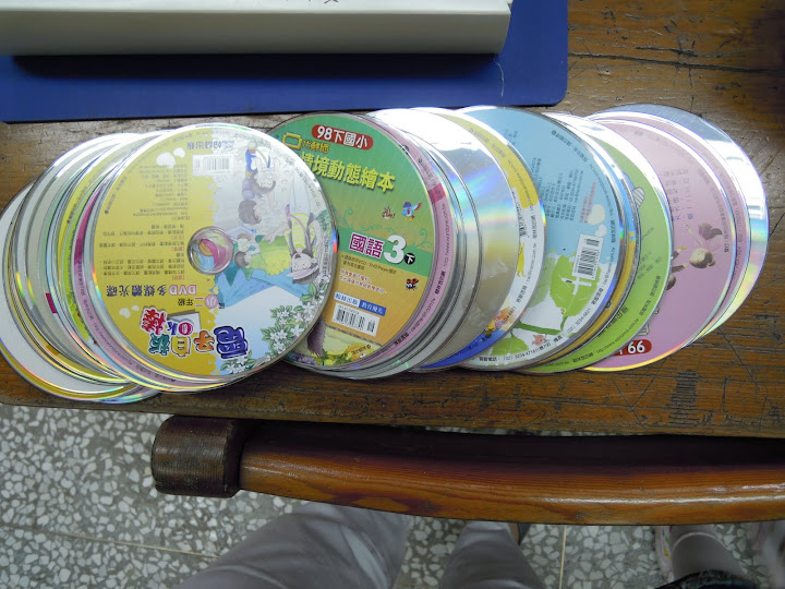 轉頭撇見在小桌上的一堆光碟片,整理教室時發現累積好幾年的教學光碟,丟掉很可惜~
