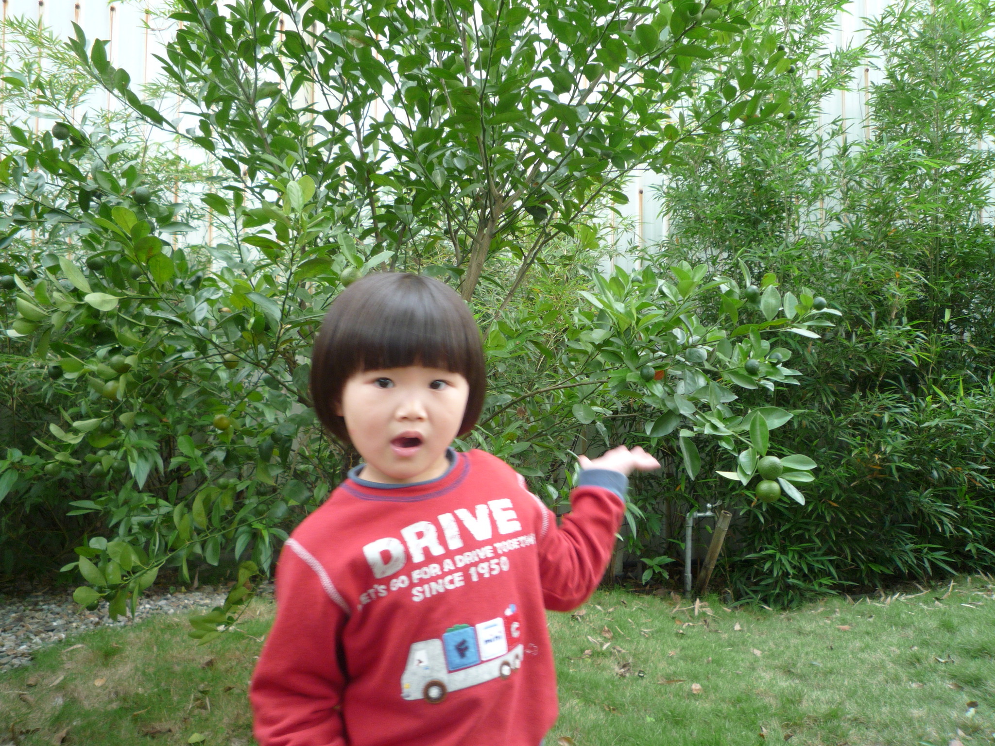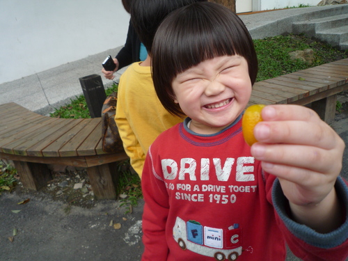 滿地的金橘、金棗唷~小可忍不住和哥哥撿起來做紀念