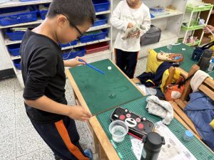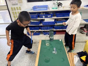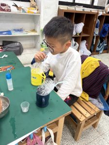 在生活課我們有在導師的課程安排下,觀察和了解泡泡水,體驗製作和學習如何能讓吹出來的泡泡更持久。