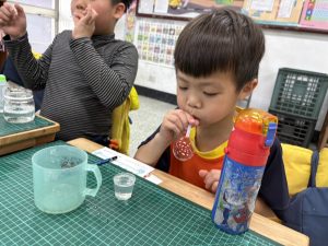 雖然學生們對於怎麼樣的容器可以吹出夠大的泡泡沒有太大的好奇,但誰又能在泡泡水面前忍住不吹呢XD