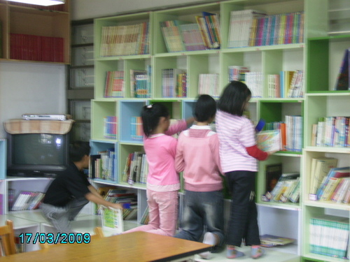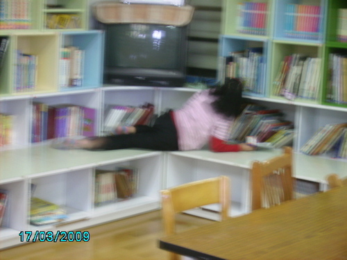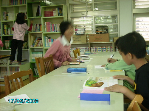 由於前一週有小朋友借書回家看,如今有小朋友想還書。所以就全班過去看書吧!