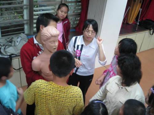 到校後,校護阿姨早已恭候多時,可是到校的小朋友只得緊接著上課!所幸這些課程是挺實用的救命課程,對於日後有突發狀況發生時,可以派上用場!