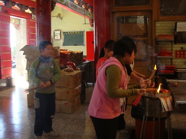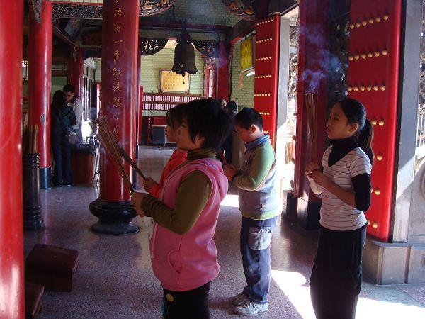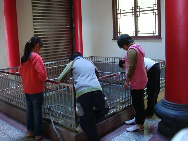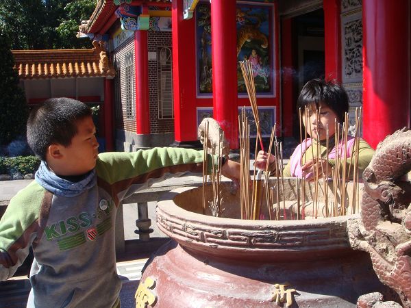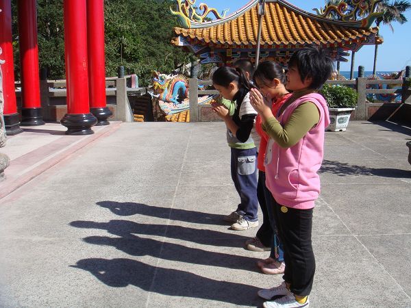 在進行第三個活動前,我們在教室先針對到廟裡要注意的事項進行討論。接著實地拜拜去,大家都很高興,我想主要原因是──可以不用待在教室裡吧!最後大家還抽了籤,雖然沒有解籤詩的人,不過,看起來大家的都是好籤。進行活動前,有請小朋友先回家問問可不可以到廟裡去,小朋友異口同聲的回答早就跟家人到過廟裡拜拜了,也就放心進行活動,不過,隔天暄柔說:「媽媽說她怎麼可以隨便抽籤?」原來還有沒注意到這個細節,雖然我們有按拜拜的規矩來,但還是不應該讓小朋友隨意抽籤。所以,下回再進行類似的活動前,應該請小朋友回家先問清楚。