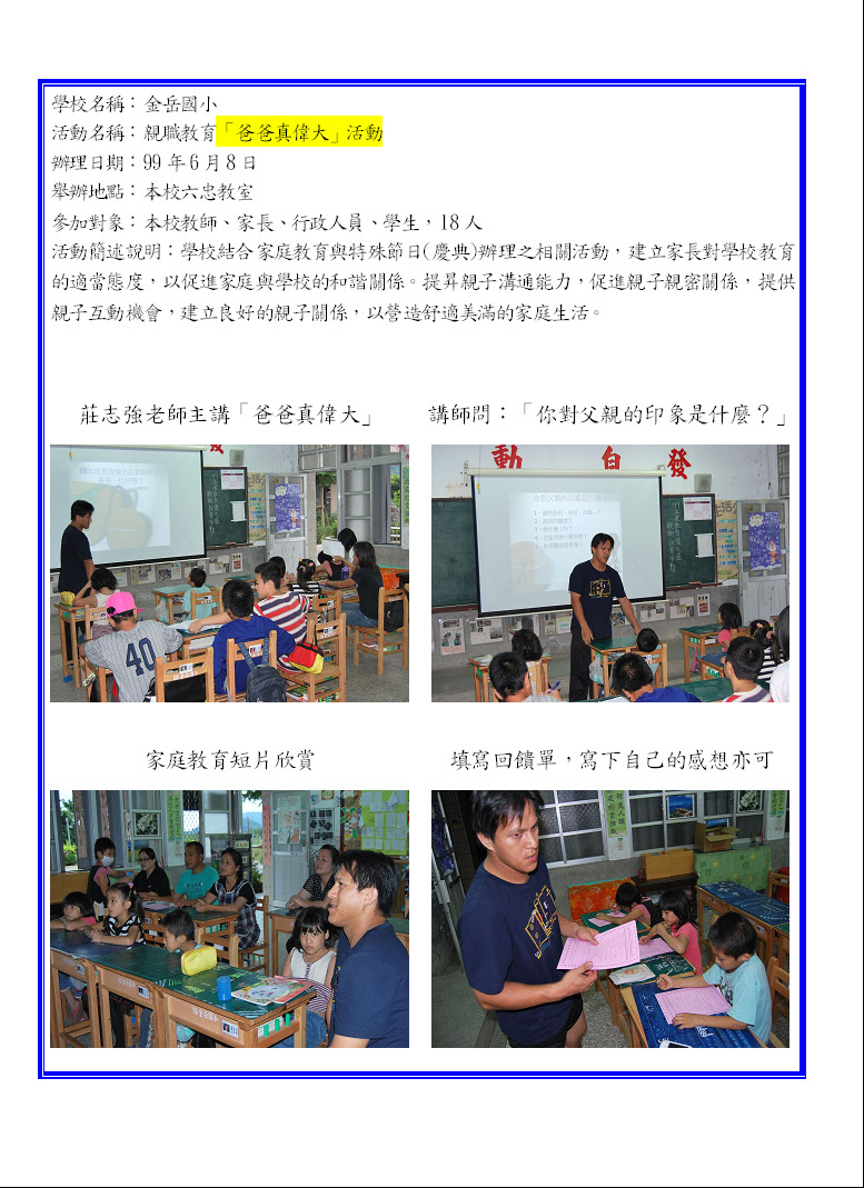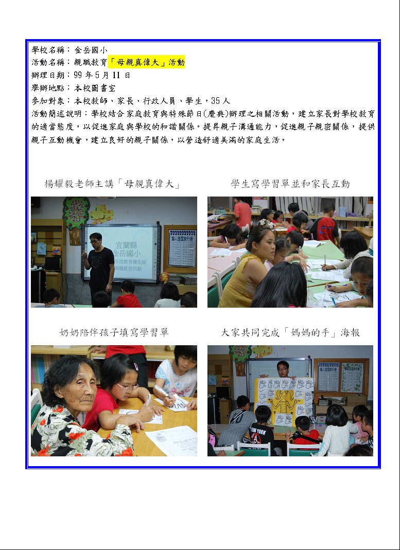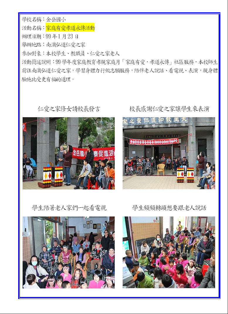 家庭教育配合節慶時令成果