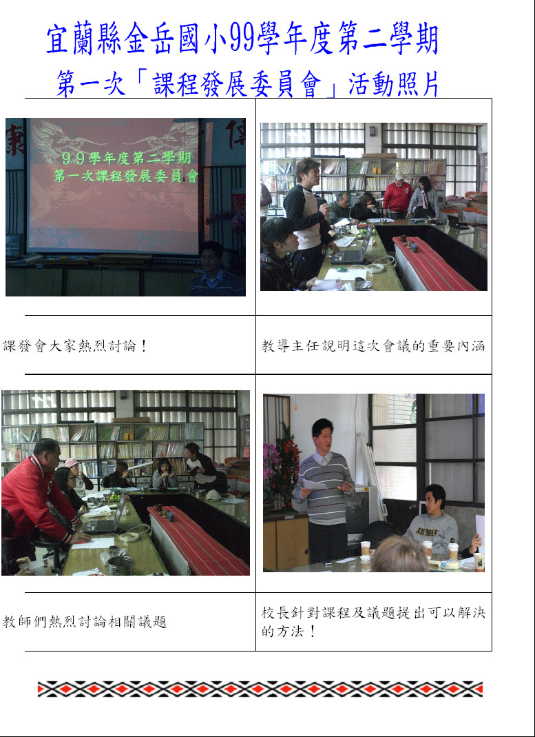宜蘭縣金岳國小99學年度第二學期 第一次「課程發展委員會」活動照片