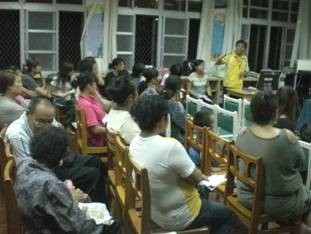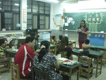 照片說明:教師向家長說明課綱及教學活動。