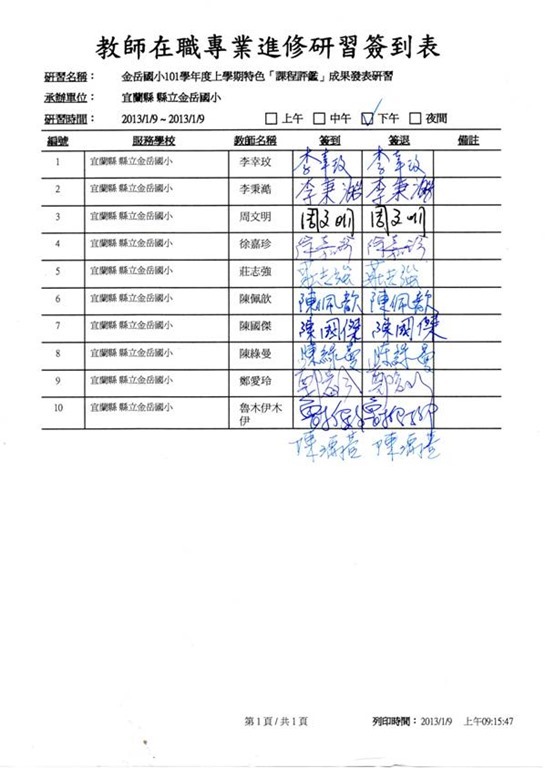 宜蘭縣金岳國小101學年度上學期特色「課程評鑑」成果發表研習