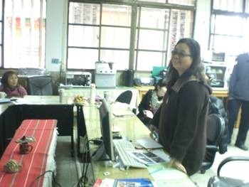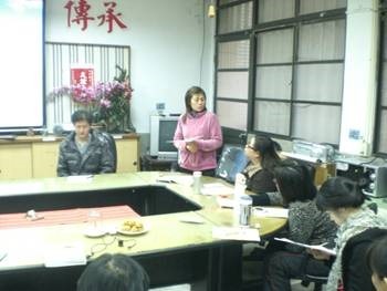 照片說明:綠曼老師說明生活課程評鑑的重點與教學技巧。