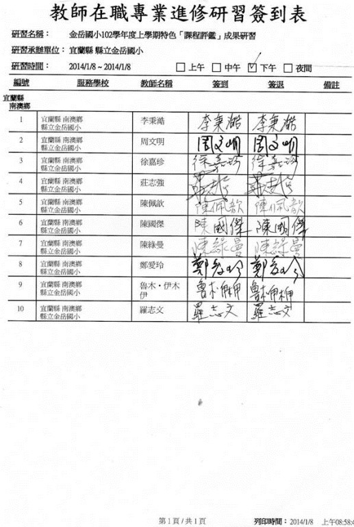 宜蘭縣金岳國小102學年度上學期特色「課程評鑑」成果發表研習