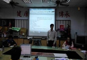 照片說明:校長介紹這次研習的重點 | 照片說明:陳主任提出課程評鑑的目地與自己上課的學生表現與自我省思。 |