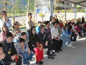 泰雅舞蹈表演—夢、夢、夢 學生展現熱情的活力 | 松山國小師生專心觀賞泰雅舞蹈表演。 |