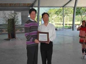 熱舞後大家一同合影留念 | 金岳、松山國小兩校校長共同交換禮物 |