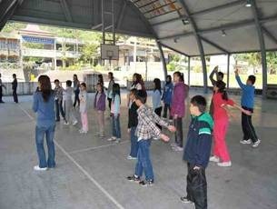 現代舞表演也行「天使」 學生展現熱情的活力 | 松山、金岳國小師生和師生共同學習熱舞。 |