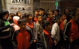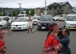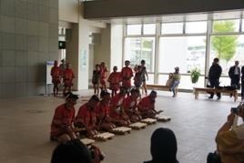 早上參觀網走監獄博物館之後,隨即搭遊覽車到網走市文化會館表演,由於在網走監獄博物館耽擱比較久,所以到達文化會館約11:20分左右,而表演時間為12點,楊夢哲教授告訴我們,「日本人非常守時,做任何事情都依活動規劃來進行」,於是我們一進入會場,就看到會場接待人員領我們到休息室去,到了休息室,莊老師就告知學生換成原住民服裝,還有約40分鐘左右,時間特別的趕,學生也顯得非常焦慮。在換衣服當中,教授還買了一份麵包給學生吃,因為表演在中午,怕學生會餓著了,表演時沒力量,先填填肚子先。換玩衣服後,莊老師帶著學生到戶外的停車場空地暖身練習,一出戶外,攝氏10~13度的溫度,讓我們直打哆嗦,不時地用手摩擦手臂,莊老師也隨即帶領著學生跑步,邊跑邊唱歌暖聲,學生雖因冷天氣受限,不過在跑步過程中,發現學生的狀態越來越好。暖聲結束後,莊老師集合學生,告知學生表演的注意事項,並鼓勵學生盡量把動作與歌聲放出來,讓日本人知道金岳國小泰雅族的文化之美。因為時間快到了,工作人員告知我們該回去準備,於是大夥整隊安靜的走到表演會場。