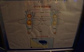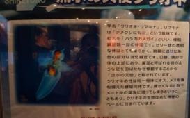 走出極寒體驗室後,有飼育居於鄂霍次克海流冰下的稚魚及流冰小天使(KURIONE) 的水族箱。小天使魚真的好特別,他真的好像小天使的造型,他有一雙翅膀,還是半透明的,在水族箱的照射下可以很清楚的看到他發出螢光色的內臟,還有另外一種長得很像小河豚的流冰裡的小生物。