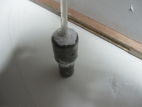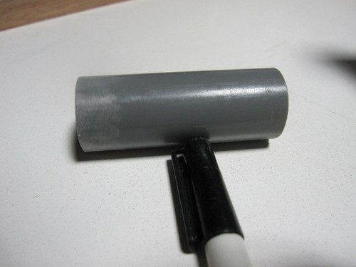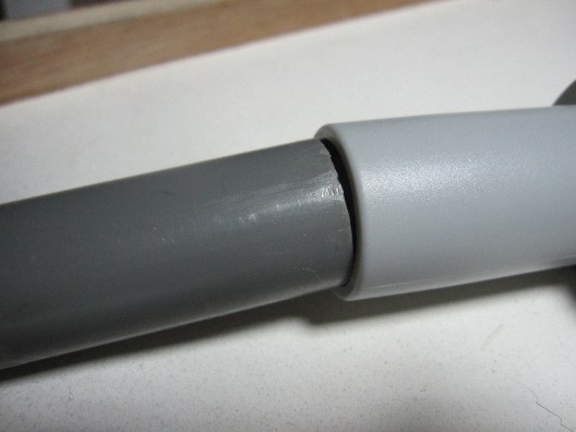 我比對各個尺寸的PVC水管後,發現六分的厚管與Electrolux Z-8280的接頭最接近,但是六分的厚管仍然無法塞入接頭中,稍微大了一點點,這時就需要使用戰車轉動砂紙來快速地把六分厚管的外緣稍微修薄一點。