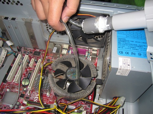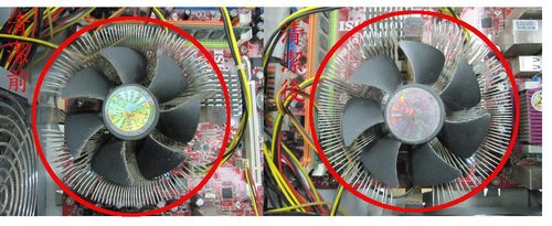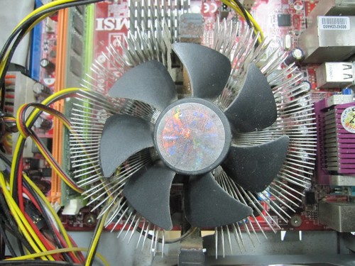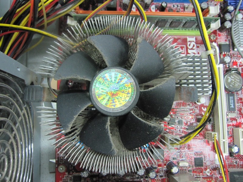 CPU風扇的內葉,蠻髒的。這樣的情況恐怕會影響CPU的散熱。