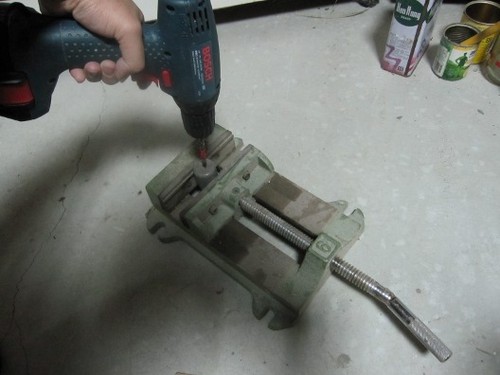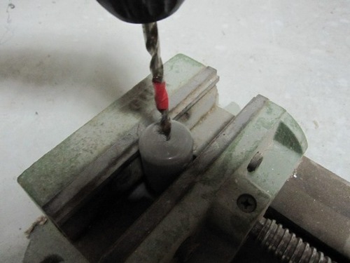 利用電鑽加上2分的木工鑽頭把管帽鑽出一個洞來。