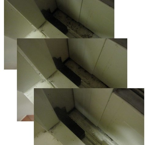 真的乾淨些,我研究了下,為什麼還是有吸不起來的?應該是這些灰塵在這裡住太久了,下雨天沾到了水,以至於灰塵黏在窗台上,要真的乾淨,還是得用擦的。不過至少證明這個DIY吸頭對於現有吸頭無法深入的地方,還是有它的功效。