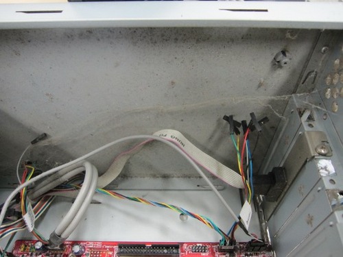 電腦的底部,久沒打開側板,連蜘蛛都在裡面活動了。
