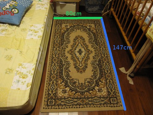 這是目標物「地毯」,長147公分、寬80公分,平時有用掃把把它清乾淨,但是應該很少洗。