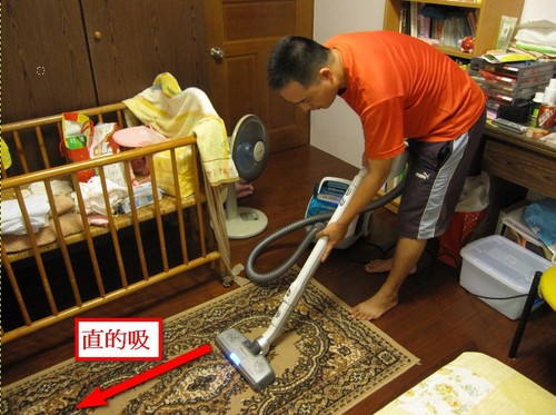 一樣,直的橫的都來回吸一次。就直接跳結果吧!哎喲!還有這些多灰塵棉絮,難怪我常在老婆的房間裡擦鼻水。