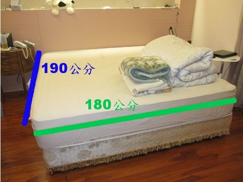 再來就是每天睡的床了,這是加大尺碼的床,長190公分、寬180公分。