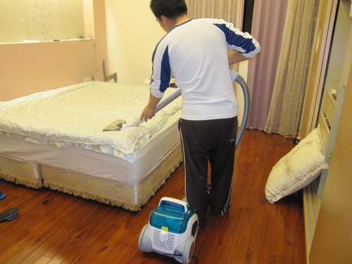 這是老婆大人之前睡的床(長193公分、寬150公分),因為是要睡的,雖然不是新的,至少維持得算是乾淨,看不出來有什麼問題,不過我們還是要用Electrolux Z-8280來檢驗它。