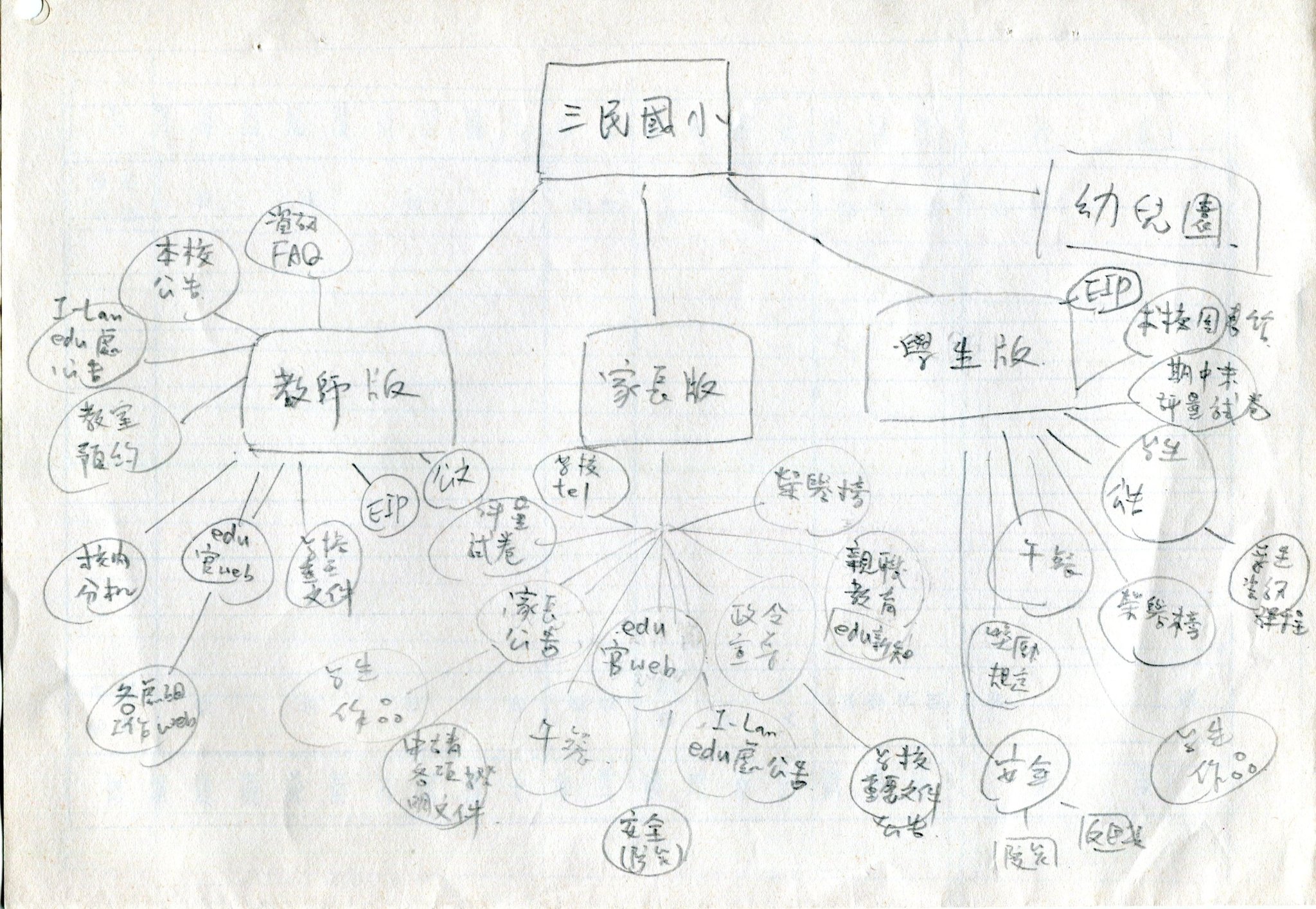接著我利用了1月17日下午開校務會議的同時(耳朵聽報告,心裡想網站規劃,手再把想的畫出來)來把未完成的規劃做完。