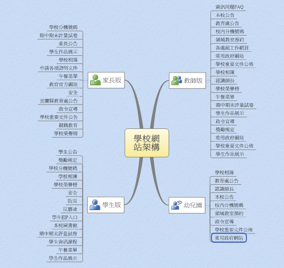 這只是大項的列出,而後會需要把部份項目再做成子項目,例如:教職原版中,公文系統與EIP就應該同為子目錄,放在常用連結這個父項目下。