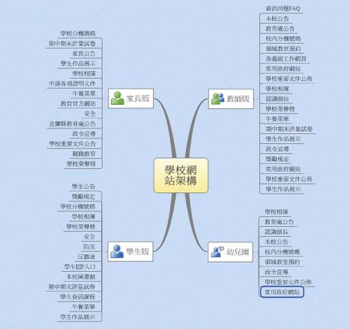 這時也想到可以幫學校的附設幼兒園獨立一個區塊出來,於是首頁可能就會變成這樣。