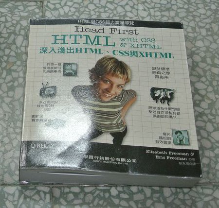 開給自己的第一書單是歐萊禮出版的「 Head First深入淺出HTML、CSS與XHTML」,以前就聽頭城國小的昭名老師提到歐萊禮出的書很讚,這次就要換我來挑戰了。