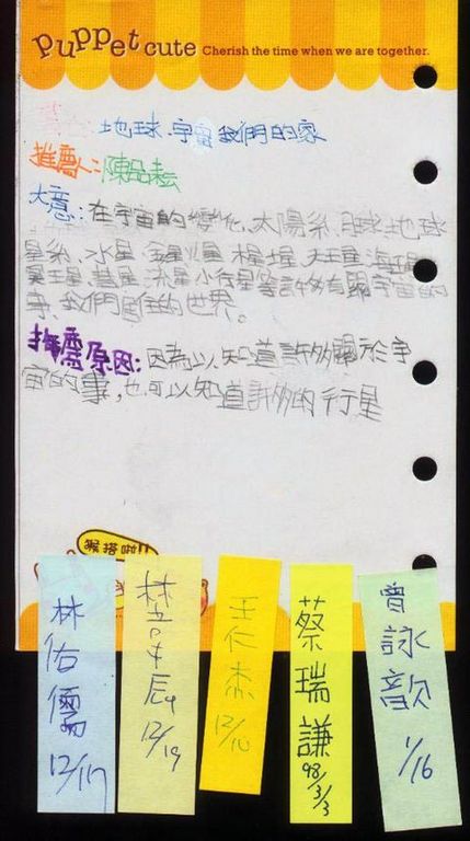 品耘的好書推薦-地球‧宇宙‧我們的家(~97.12~)Post author:連振翔Post published:2009 年 1 月 27 日Post category:同儕好書推薦區書籍推薦名稱:地球‧宇宙‧我們的家 推薦過程影片 推薦單與閱讀者相關內容東晉的好書推薦-湯姆叔叔的小屋(~98.03~)2009 年 4 月 8 日婷亘的好書推薦-赤腳的日子(~98.05~)2009 年 5 月 14 日品耘的好書推薦-畫框裡的秘密(~98.05~)2009 年 5 月 5 日