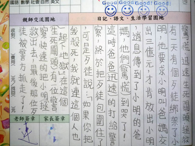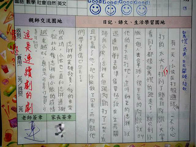 [97.02.26]創意急轉彎-驚慌.迅速.生死關頭.拯救Post author:連振翔Post published:2009 年 3 月 1 日Post category:語文小狀元-創意急轉彎驚慌.迅速.生死關頭.拯救這四個詞是從國語第二課「小飛俠讀書報告」中擷取出來的~就看看各位小作者們能不能編寫出一個能與小飛俠媲美的故事囉!! 第一篇[@more@] 第二篇 第三篇 第四篇 第五篇 第六篇 第七篇 相關內容[97.10.02]創意急轉彎-幽默.冷笑話.節目.嘲笑2008 年 10 月 5 日[98.05.07]創意急轉彎-爆發.逃難.包裹.奄奄一息2009 年 5 月 10 日[99.02.25]蔓延.頑強.奈何.下水道2010 年 3 月 5 日
