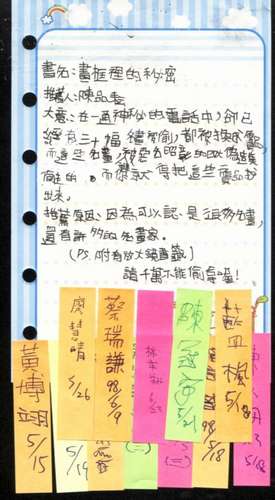 品耘的好書推薦-畫框裡的秘密(~98.05~)Post author:連振翔Post published:2009 年 5 月 5 日Post category:同儕好書推薦區推薦書籍名稱:畫框裡的秘密 推薦過程影片 推薦單與閱讀者 相關內容婷亘的好書推薦-未亡人(~98.11~)2009 年 12 月 14 日慧晴的好書推薦-靈犬萊西(~98.03~)2009 年 4 月 1 日以珊.單涵.靜穎.婷亘的好書推薦(~99.03~)2010 年 4 月 6 日