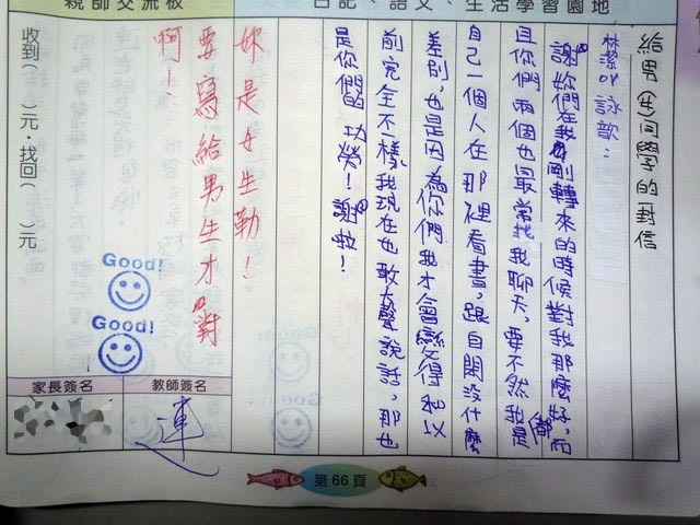 所以,男同學要寫給女同學~女同學要寫給男同學!