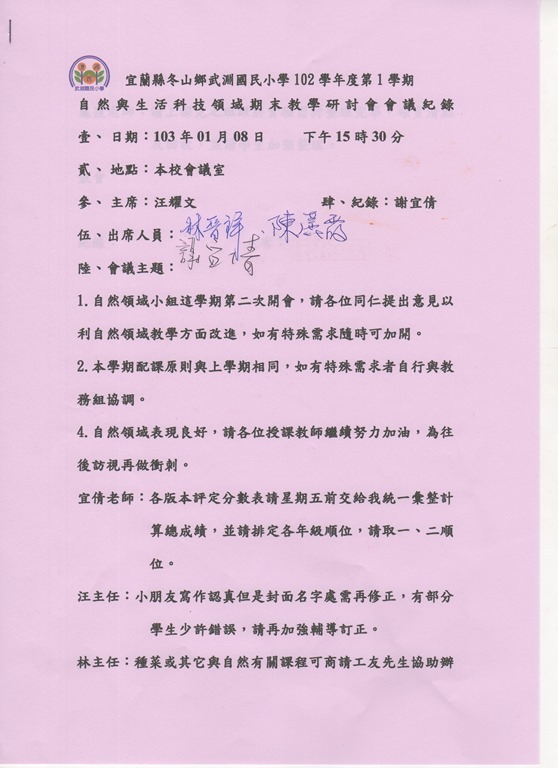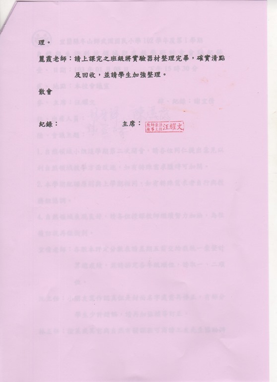 上一篇文章 102學年度領域教學會議紀錄(自然1)