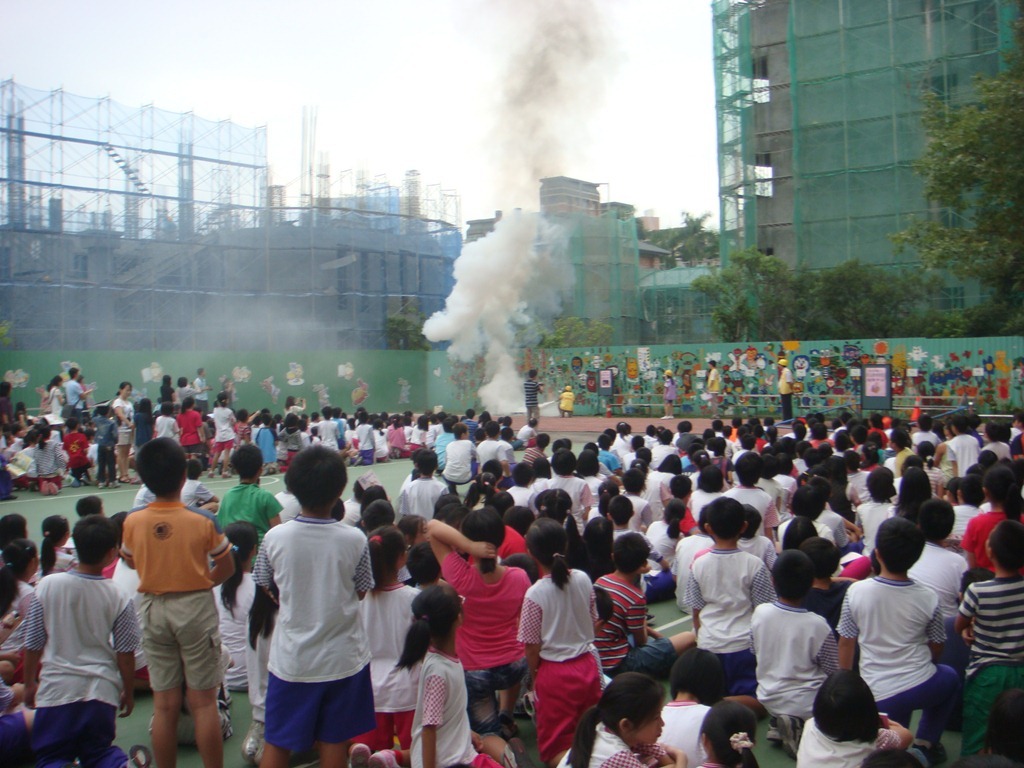 9月20日學生朝會期間,我們舉辦今年度的防災演練,內容有地震及火災發生時該如何處理。