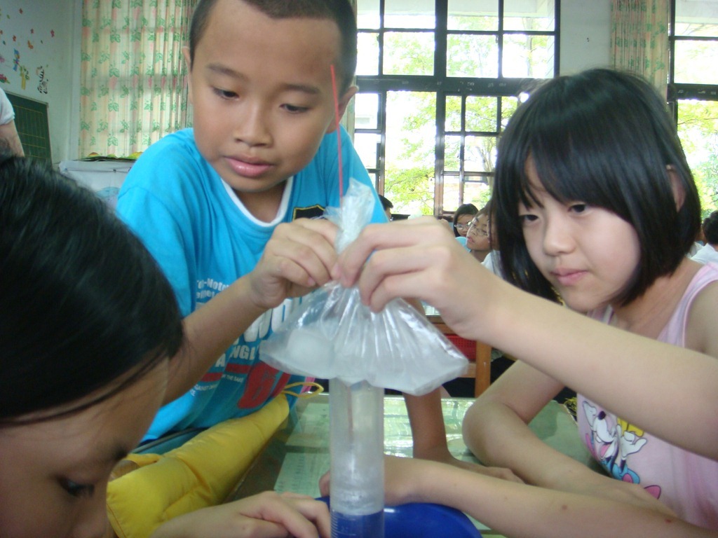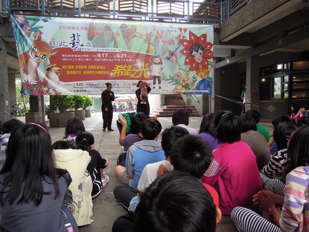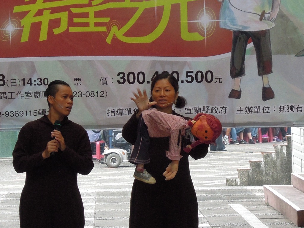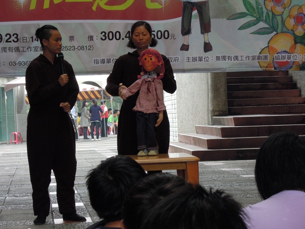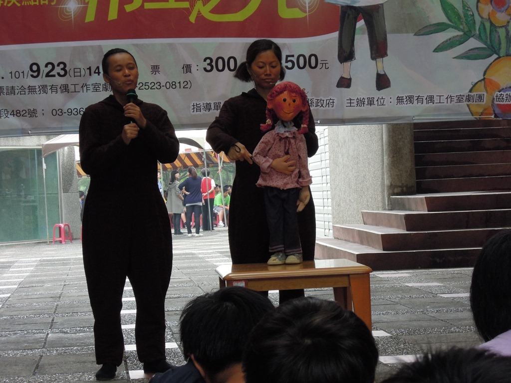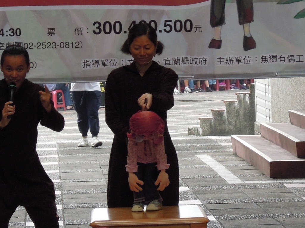 執頭偶的偶是利用後面的棍棒來操縱,這時鎮團之寶毛妹出場啦! 在看完老師的示範,同學們紛紛躍躍欲試想上台去玩玩看!