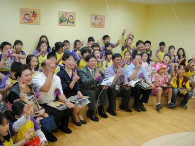 (主持玉山圖書館開幕的貴賓們鼓勵小朋友多多閱讀)