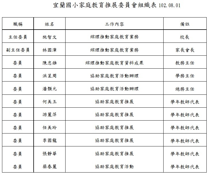 家庭教育推展委員會組織表