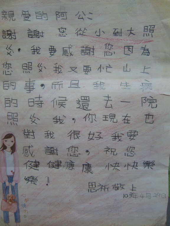 1-1-2 103.05.10 二年級4小時家庭教育課程作者:moonj2014 年 5 月 12 日2021 年 3 月 18 日活動日期:103 .4月-5月活動年級:二年級活動時數:1小時活動內容:寫一封信給家人,感恩家人平時對我的照顧
