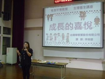 學校名稱:宜蘭國小 活動名稱:5年級性平宣導 辦理日期:103.05.13 13:30-14:10 舉辦地點:本校視聽室 參加對象:本校5年級學生 活動簡述說明:藉由華歌爾公司人員說明青春期生理特徵,讓學生更明瞭男女生理不同,也讓學生能將性別平等意識融入日常生活中。 | |