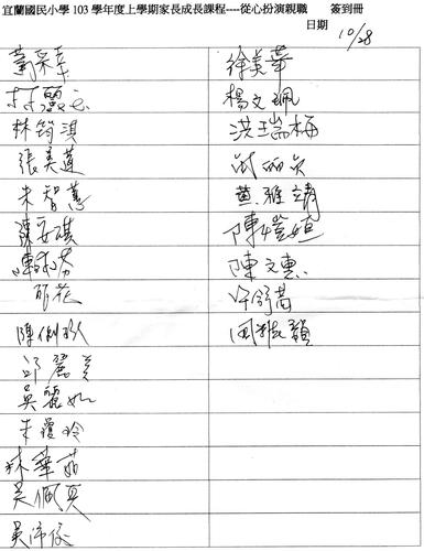 宜蘭國小家長成長班回饋單 及簽到冊 103.10.28