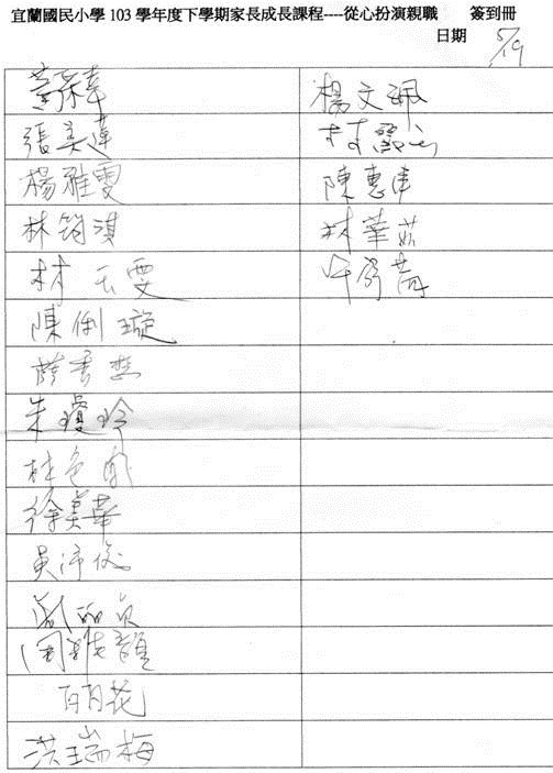 宜蘭國小家長成長班回饋單 及簽到冊 104.05.19