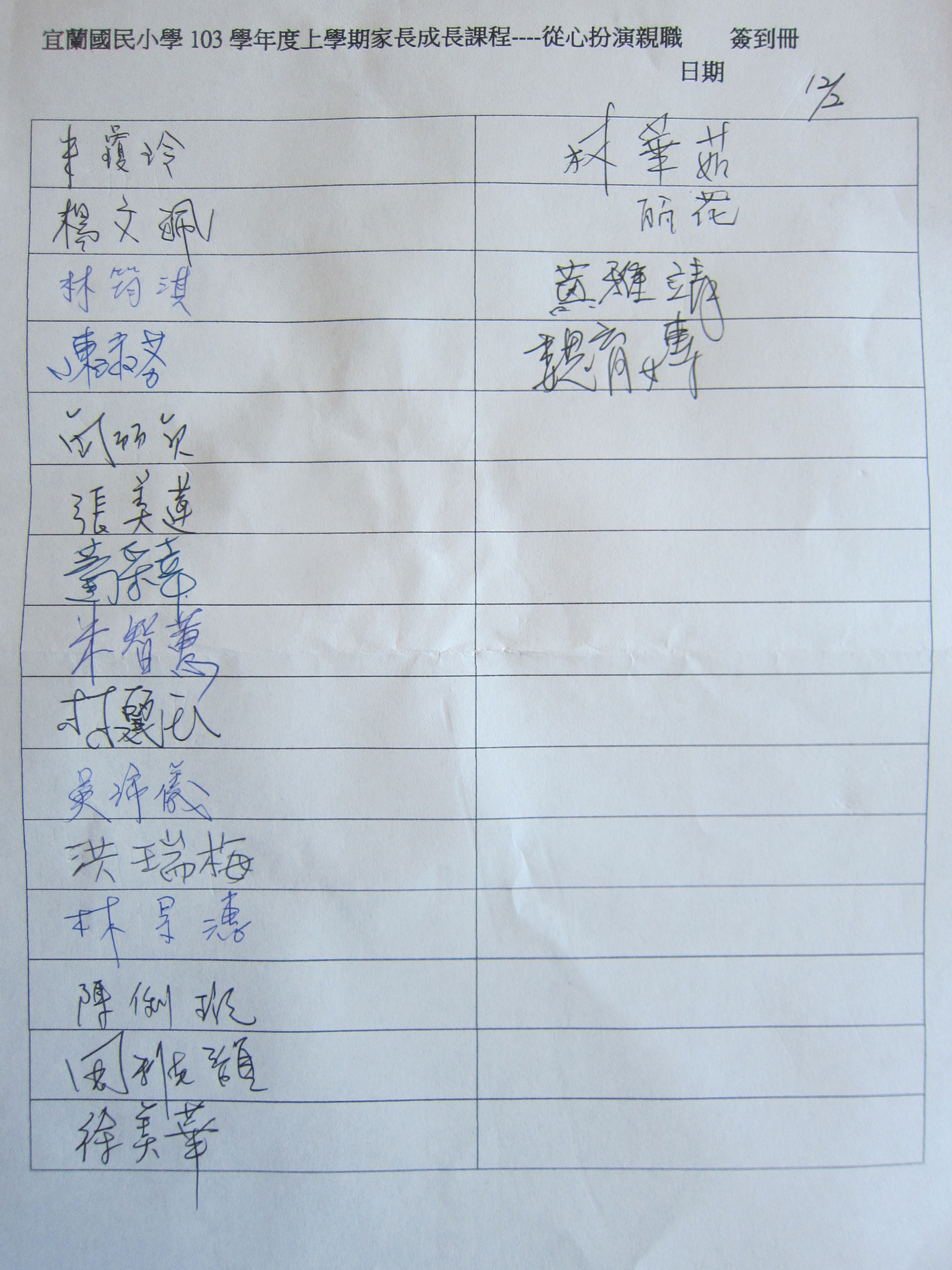 103年度宜蘭縣宜蘭國民中小學辦理家庭教育工作訪視自評表