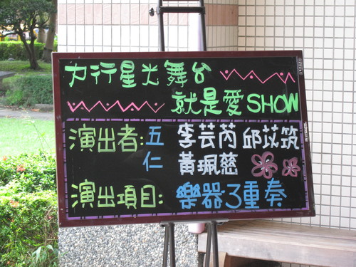 首先,由承聰主任開場介紹表演者–芸芮、珮慈、苡筑,並說明要表演的曲子~
