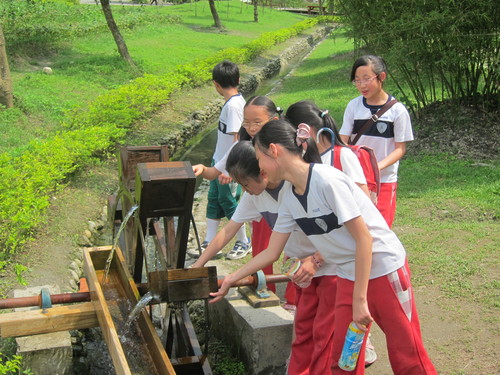 回程,路過水車,大伙不禁童心大起玩起來了~~