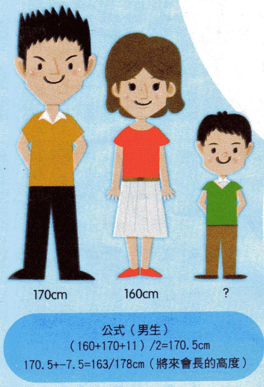 男生的身高約是父母親身高總和加上11公分,除以2,再加減7.5公分