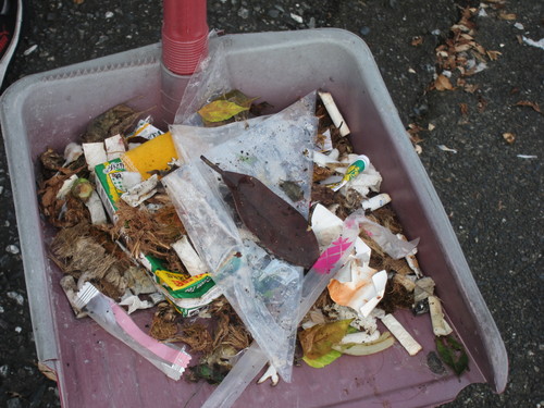 沒有雨衣的同學只好每人發一件輕便雨衣